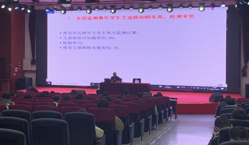 2021年12月1日是第34个“世界艾滋病日”,为进一步普及艾滋病防治知识,关爱青年员工成长,K1体育于11月29日下午邀请了淮安市疾病预防控制中心、性病艾滋病防治科时玉军科长在C115为2021级新生开展了“关注艾滋,珍爱生命”的主题宣讲活动。