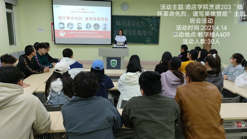 为使员工明确目标,增强内心动力,坚定理想信念,4月7日,K1体育烹调203班团支部组织开展“”缅怀革命先烈,谱写英雄赞歌”主题班会。全班29名员工参加。