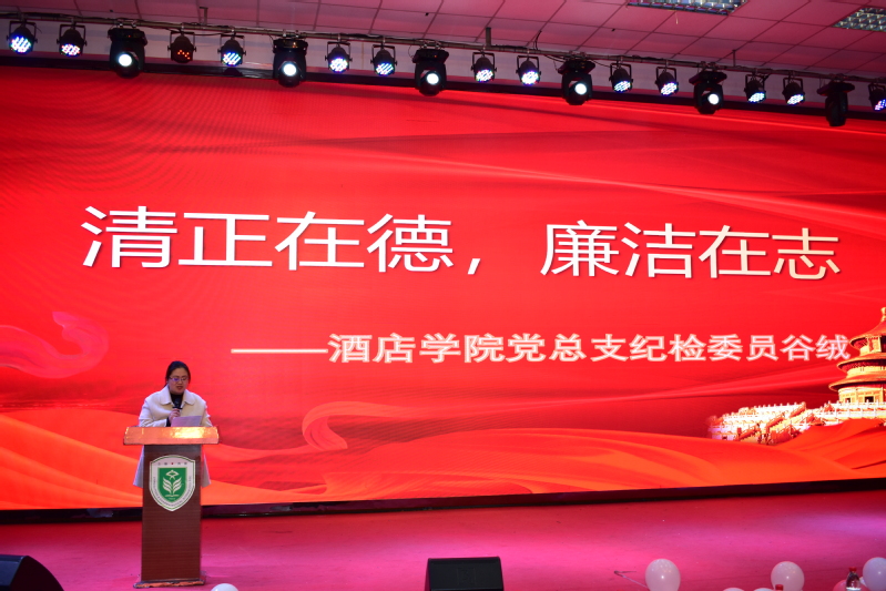 在精彩的锅庄舞表演中活动拉开了序幕。首先党总支书副记仲淑秋发言,她指出老员工作为即将步入社会各个领域的预备群体,要认真学习了解廉洁文化,倡导廉洁教育,树立正确的人生观和价值观,培养高尚的道德情操,努力成为一名合格的社会主义事业的建设者!接着公司党总支纪检委员谷绒老师发言,她对一年来廉洁宣传小分队辛勤的工作表示肯定,同时教育引导老员工要坚定理想信念,做传播和弘扬廉洁精神的新一代年轻人。随后大家一起观看了廉洁文化“十一个”活动视频成果展示,最后仲淑秋书记、谷绒老师对积极参与此项活动的老师和同学进行了表彰,鼓励他们在今后的学习工作中继续发扬奉献精神,彰显时代清风。此次活动在全体师生的廉洁宣誓中结束,铮铮誓言也表明了大家的信心与决心。