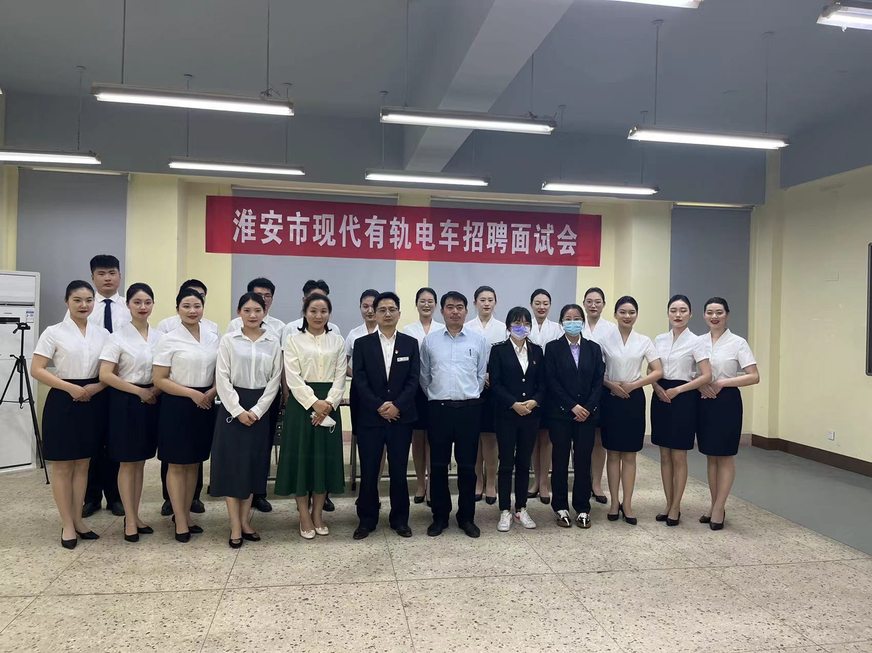 本次招聘邀请淮安市现代有轨电车经营有限公司:运营部经理应承静、客运室主任刘正永、客运室副主任倪茜、洪叶等领导到校进行现场面试。本次招聘为乘务员岗位,员工积极报名、精心准备参加本次面试。公司领导高度重视,副书记仲淑秋陪同参与本次面试。
