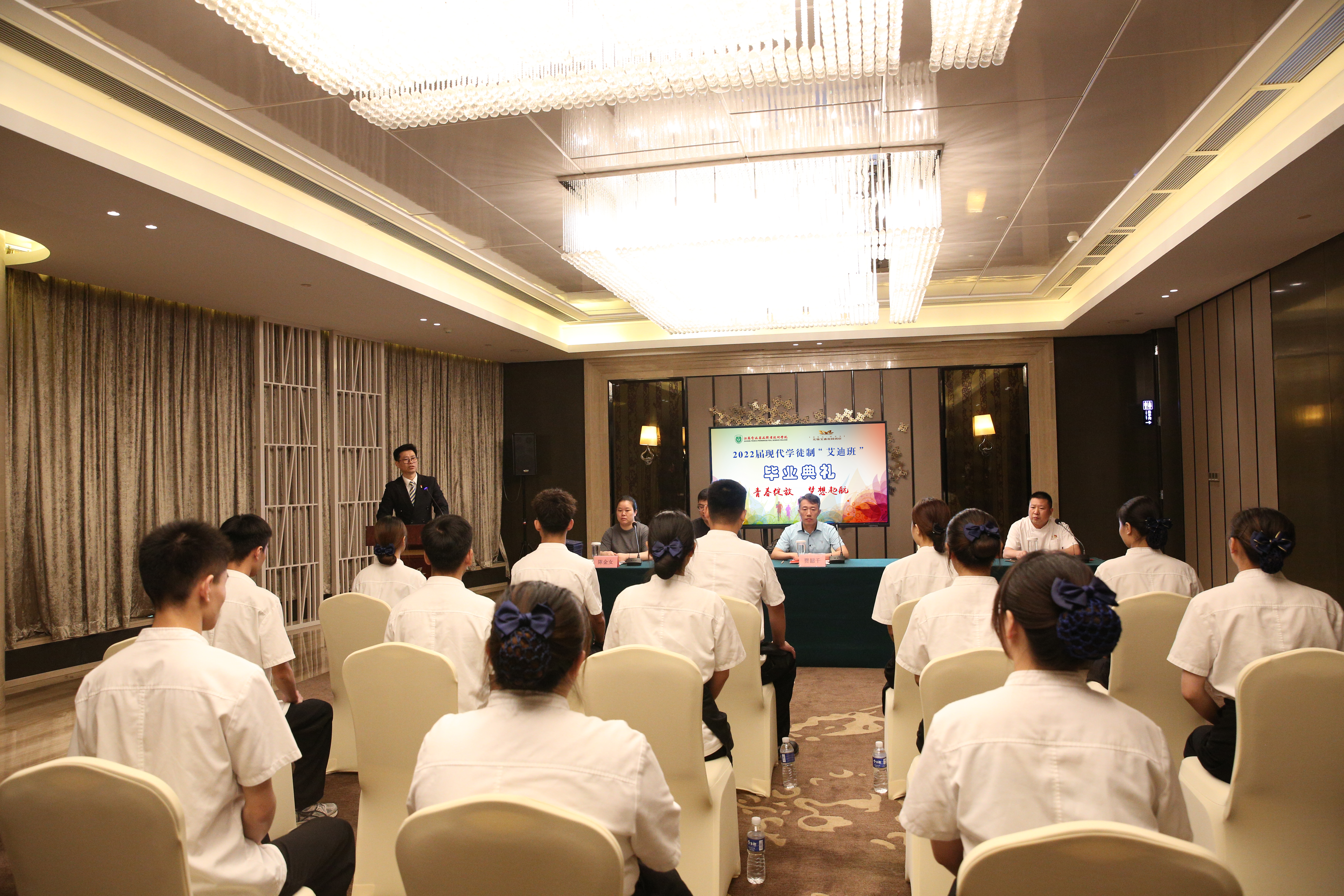 典礼在激昂的国歌声中拉开帷幕,随后酒店陈善军总经理表达了对学徒制同学的深切情谊,充分肯定了“现代学徒制”的人才培养模式,这种培养模式让员工提前进入职场,并且要比在校生拥有更强的动手能力。