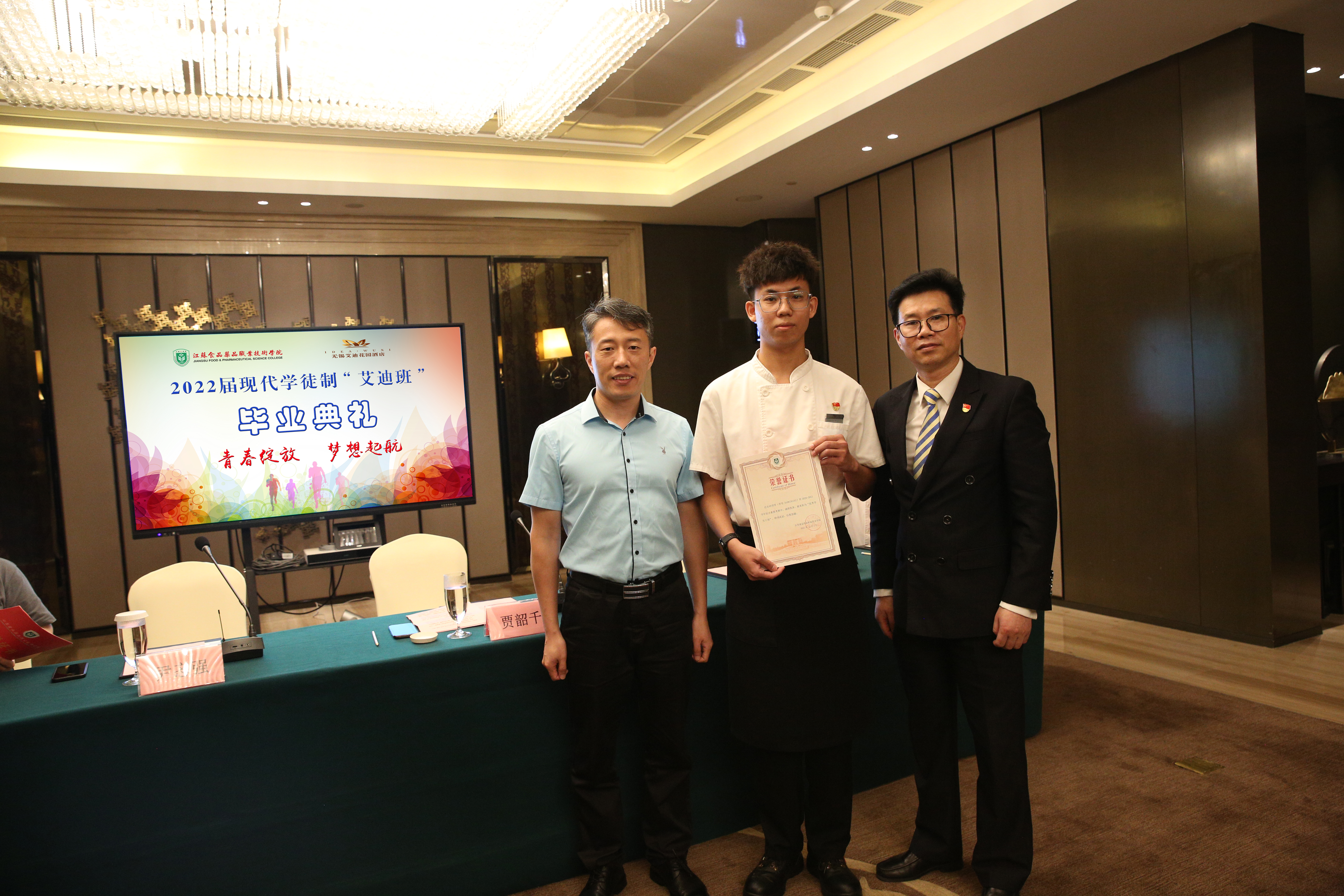7月27日上午,2022届烹饪工艺与营养专业群现代学徒制“艾迪”班毕业典礼,在艾迪花园酒店会议中心碧水厅举行,13名现代学徒制毕业生参加了毕业典礼。出席的嘉宾有K1体育副董事长贾韶千,无锡艾迪花园酒店党支部书记、董事长兼总经理陈善军,行政总厨贾永康,K1体育副经理尹忞强,教师陈金女。本次典礼由尹忞强副经理主持。