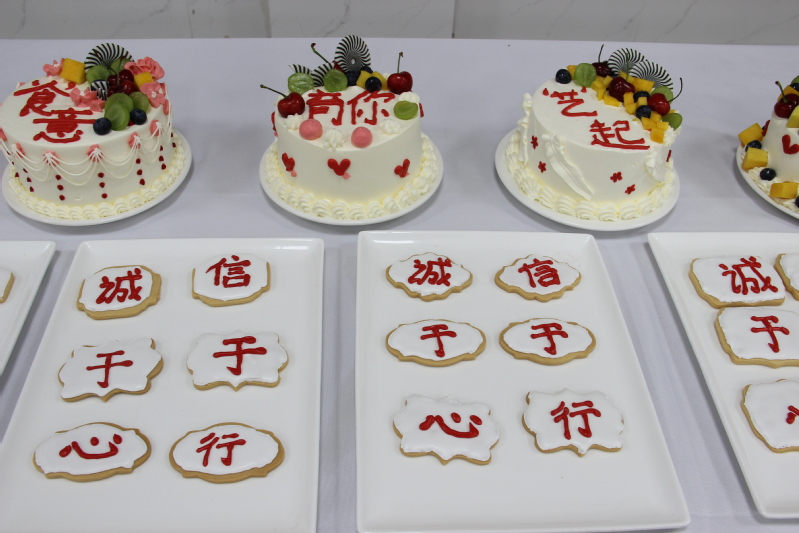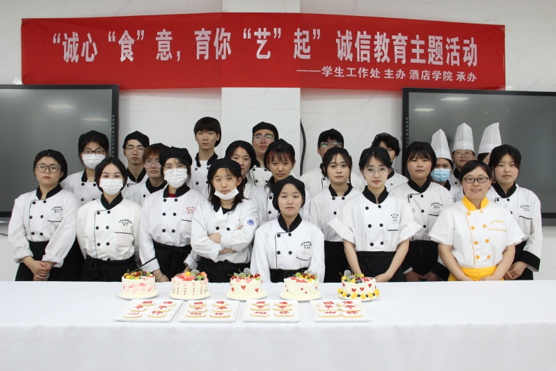 活动开始,宋君庆老师进行诚信主题宣讲,教育引导大家诚实做人、踏实做事;接着是“说一套做一套,手口不一”小游戏环节,同学们拍腿击掌,用手比划出来的数字和嘴里报出的数字不能一致,轮流比划报数,手口报数一致者被淘汰,通过游戏让大家切身感受诚信的重要性;活动最后,通过辨识优劣食材,普及食品安全知识,利用优质食材制作精美蛋糕和饼干,引导同学做诚信餐饮人。