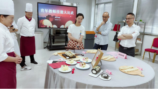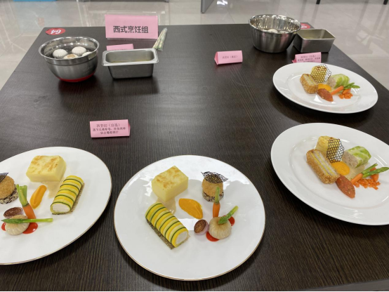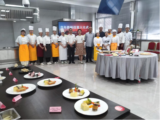 本次青年教师技能大比武根据青年教师专业背景共设置了中式面点、西式面点、中式热菜、西式热菜和营养配餐五个项目,参赛的13名青年教师,在规定时间内独立完成基本功菜肴和自选菜肴的制作,整个竞赛过程中青年教师们规范严谨、有条不紊的完成菜品,充分展现了良好的职业素养和专业能力。