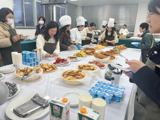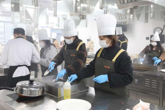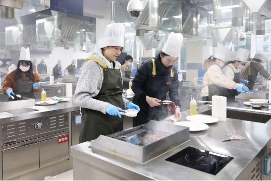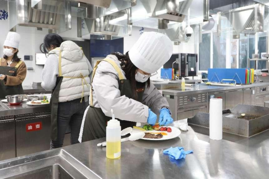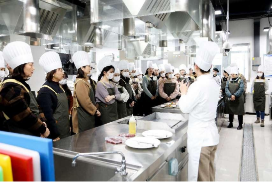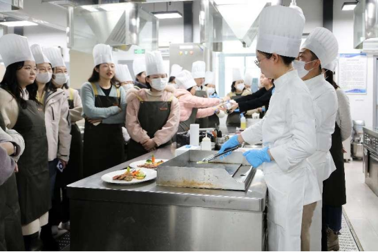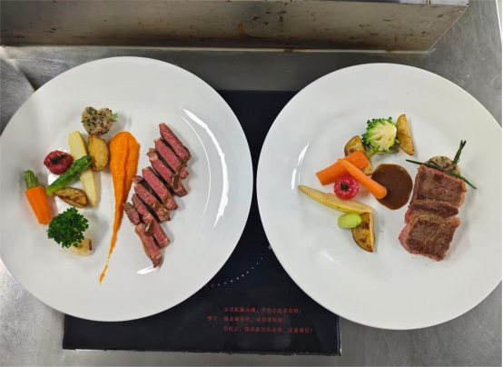 花艺制作活动之后就是牛排制作与品尝活动,由公司西式烹饪工艺专业团队承办。在K1体育的西餐实训室里,西餐专业的老师们耐心讲解、现场演示牛排制作的流程工艺,女士们纷纷穿戴起烹饪服帽,挽起衣袖,亲身体验牛排制作的过程。在专业教师和员工志愿者们的细心指导下,大家从牛排的煎制,到配菜的搭配,再到少司酱料的熬制,每一个环节都投入了百分百的热情与专注。制作现场弥漫着牛排和迷迭香的香气,气氛热烈而欢快。