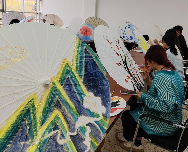 活动分为“知清明,忆前人”、“绘油伞,寄情思”、“展风采,思奋进”三个环节。预备党员王杰对全体员工干部进行红色文化主题宣讲,S1员工社区的学子们走进周恩来纪念馆、周总理故居,共同探寻伟人的光辉足迹;鼎红画廊的同学们在薄薄的伞面上绘画前人的精神与气节,勾勒如诗如画的创意与未来;高铁专业的同学们,身着民国时期的“文明新装”,手执亲手画就的油纸伞,以崭新的面貌缅怀壮烈牺牲的革命英雄。