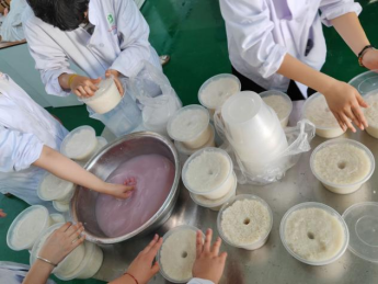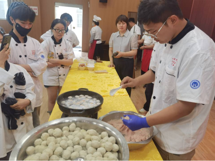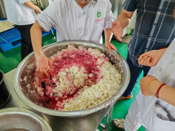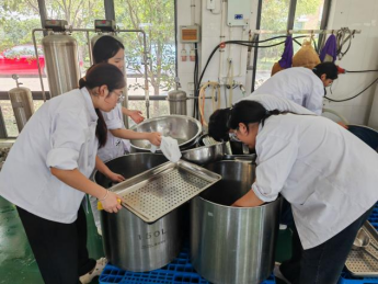 劳动实践,躬耕力行。在实训实践环节,员工们结合各自专业技能,合理有序的分工,积极参与酿酒实训和钦工肉圆生产实践。通过沉浸式的生产实践体验,员工们对农产品加工的兴趣愈发浓厚,在农产品加工和烹饪方面的技能水平得到了一定的提升,对创新创业的基本知识和技能方面也有了更加深刻地认识和理解。