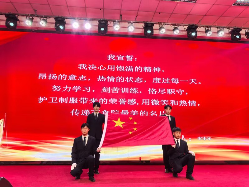 2022级实习生代表和2024级员工代表也进行了发言,表达了对高铁客运服务专业的热爱和对未来职业的美好憧憬。她们一致表示,将更加努力学习,不断提升专业技能,为将来从事的工作岗位打好更加坚实的基础。与会领导和合作企业嘉宾为员工逐一整理制服。员工正装肃立,高举右手进行了宣誓。员工表示将用饱满的精神、昂扬的意志,努力学习,刻苦训练,恪尽职守,护卫制服带来的荣誉感,用微笑和热情传递苏食院最美的名片。