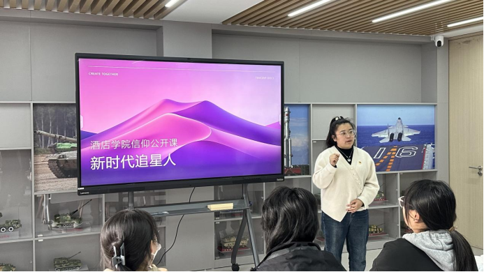 活动在庄严的国歌声中拉开帷幕。酒店公司员工党支部书记陈月老师在致辞中强调:“新时代的‘星’是扎根平凡岗位的奉献者、是勇攀科技高峰的奋斗者、是守护家国安宁的英雄。青年学子要追这样的‘星’,让信仰的力量成为青春远航的动力。”在互动环节,同学们踊跃发言,分享收获。有的同学表示,要将工匠精神融入酒店服务中;有的同学则计划凭借榜样的力量,攻克学习上的难题。