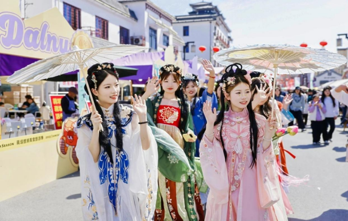 本次活动创新性地引入国风NPC元素,员工们化身古代少女,穿梭于古镇街巷,与游客互动,讲述古镇故事,带领游客沉浸式体验蒋坝古镇的历史文化魅力。