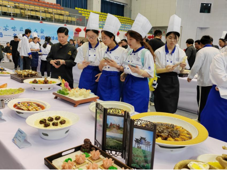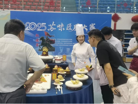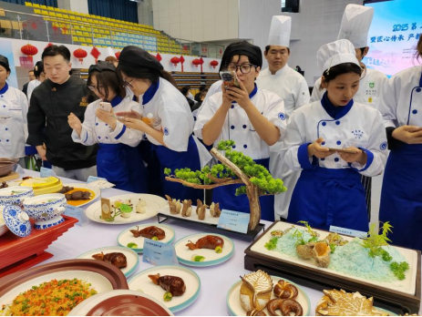 本次大赛以“匠心技艺,产教融通”为主题,汇聚全省餐饮行业精英同台竞技。现场100余道参赛作品完美诠释了淮扬菜“和、精、清、雅、养”的烹饪精髓,既有对传统技艺的坚守,又不乏创新突破。选手们通过精湛的刀工、独特的调味和富有创意的摆盘,为观众呈现了一场视觉与味觉的盛宴,也为公司烹饪专业师生带来了一场生动的现场教学。活动现场我们烹饪专业师生认真观摩,很多员工更是全程用镜头认真记录每一道精致菜品。大赛不仅搭建了高水平的行业交流平台,更通过“以赛促教”的创新模式,深化产教融合,为淮扬菜文化的传承与创新发展注入新动能。